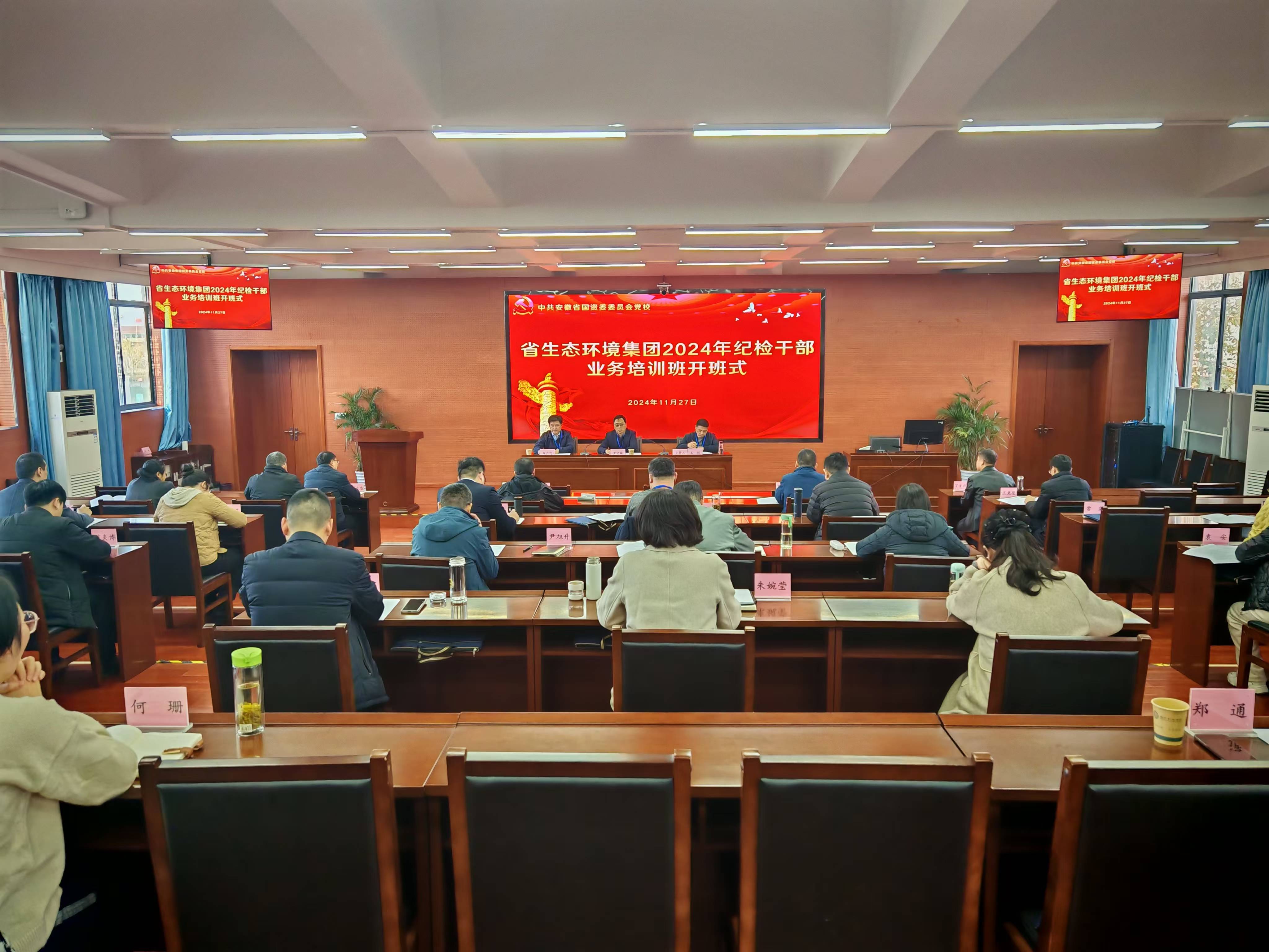 11月27日至29日,省生態環境集團在省國資委黨委黨校舉辦2024年紀檢干部業務培訓班。集團公司黨委委員、紀委書記羅守斌出席開班式并作動員講話。集團公司紀委委員、紀委兩室一組全體人員,二級單位紀委書記、副書記、專兼職紀檢干部、部分黨風廉政建設監督員共40余人參加培訓。